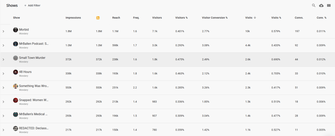 With this data, we can now approach these shows through Wondery for host-reads and ramp up the partnership.